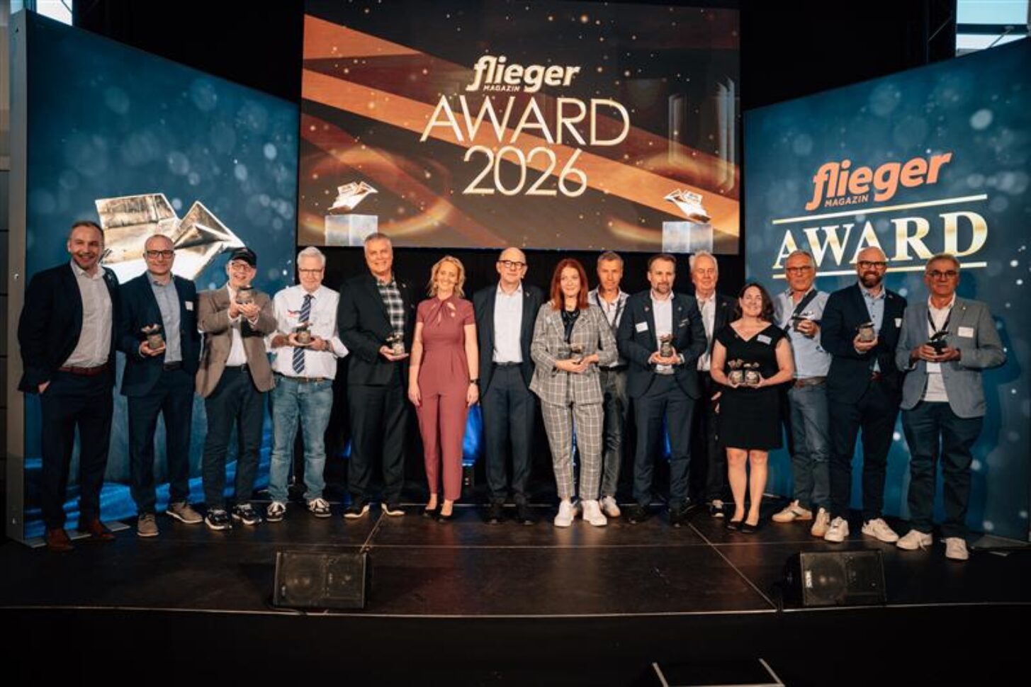Auf der AERO 2026 kamen am 23.04.2026 rund 150 geladene Gäste aus Industrie, Verbänden und Szene in das Restaurant Zeppelin Hangar zur Verleihung der Fliegermagazin-Awards. Chefredakteur Thomas Borchert und Online-Chefredakteurin Isabella Sauer überreichten die Auszeichnungen in insgesamt elf Kategorien.